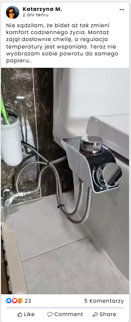 Tradycyjny papier bywa szorstki i nie zapewnia pełnej czystości. To akcesorium gwarantuje idealną higienę dzięki kojącemu strumieniowi ciepłej wody.